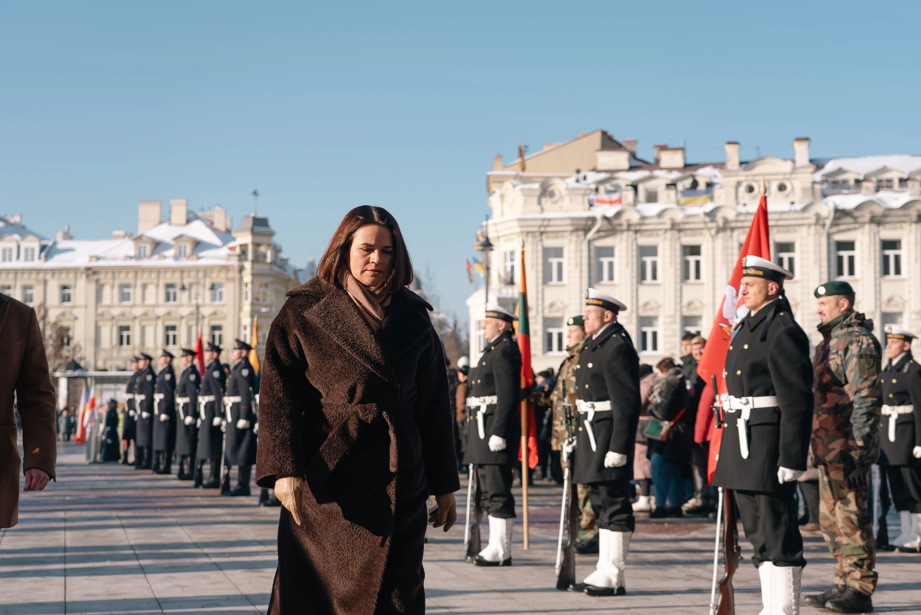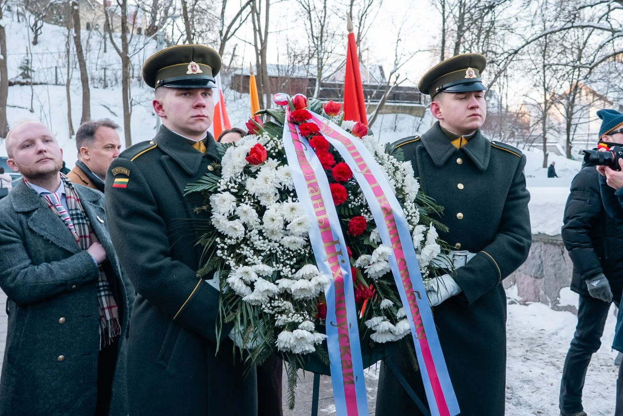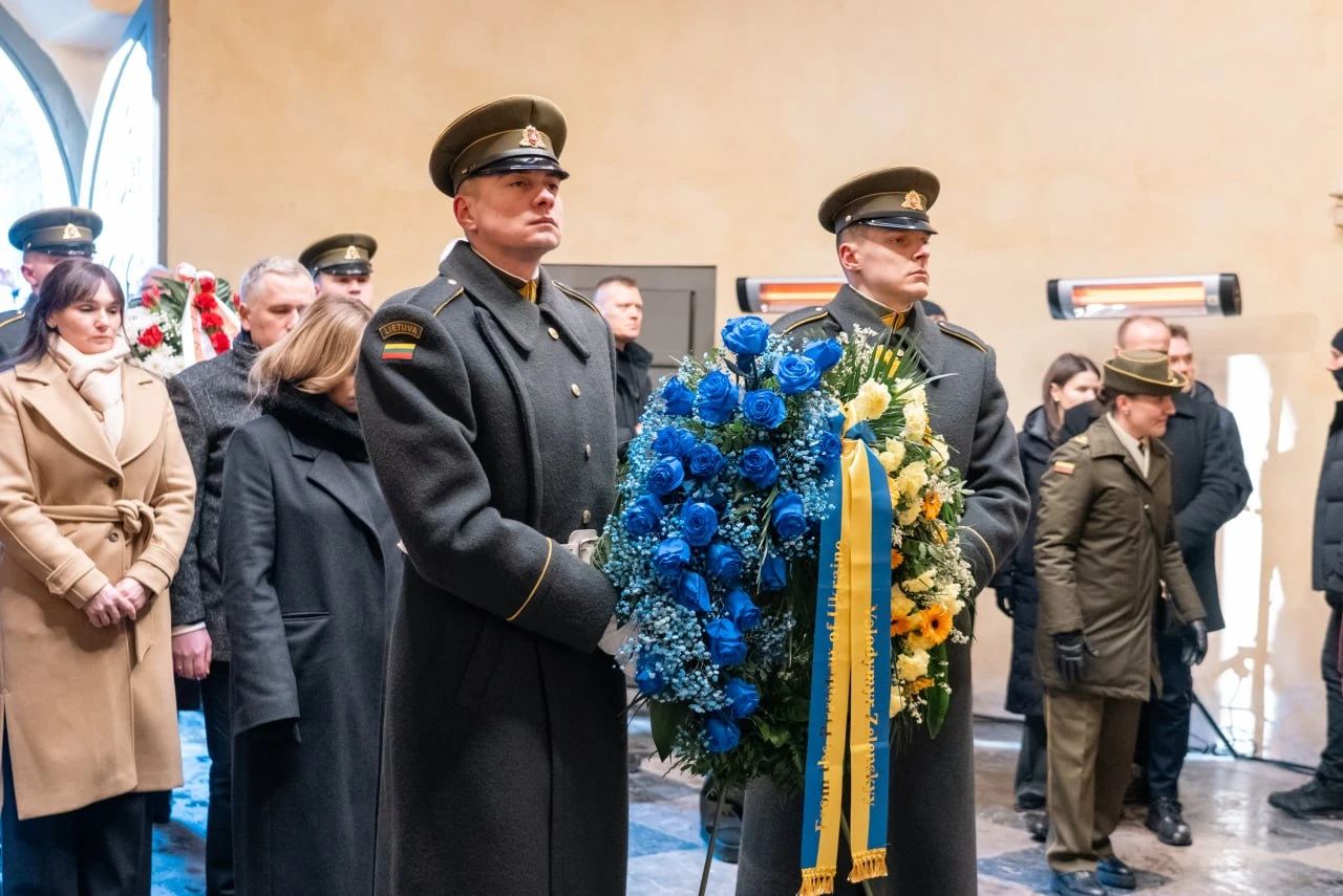 В торжественных мероприятиях в Вильнюсе приняли участие президенты Литвы, Польши и Украины Гитанас Науседа, Кароль Навроцкий, Владимир Зеленский, а также лидерка демсил Беларуси Светлана Тихановская.