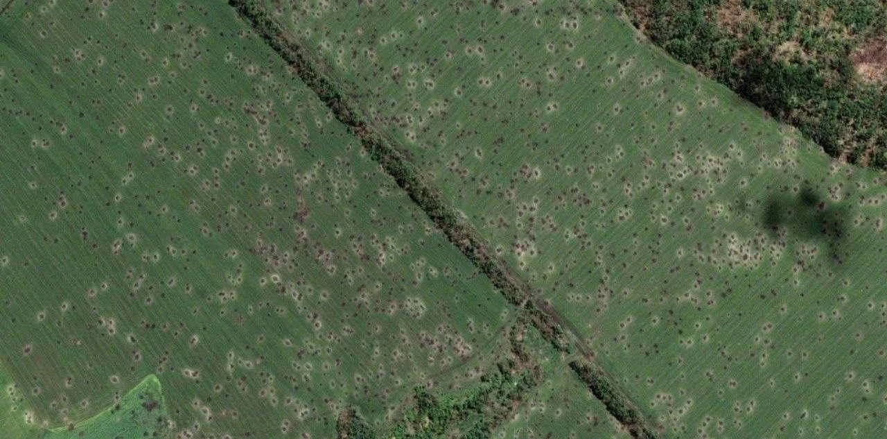 Первая картинка – это поле со следами российских обстрелов к юго-востоку от Изюма (Харьковская область) через 3 месяца активных боевых действий (май 2022 г.). С этой землёй мало что может сравниться по плодородности. Но теперь она отравлена. Навсегда или на поколения.