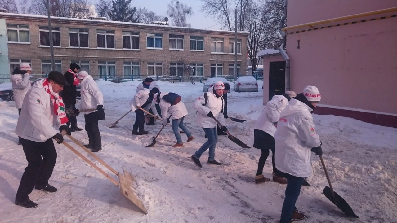 Нет у них на снегоуборке отрядов бодрых и улыбчивых БРСМовцев, ответственных членов «Белой Руси», в одинаковой униформе с лопатами одного цвета.